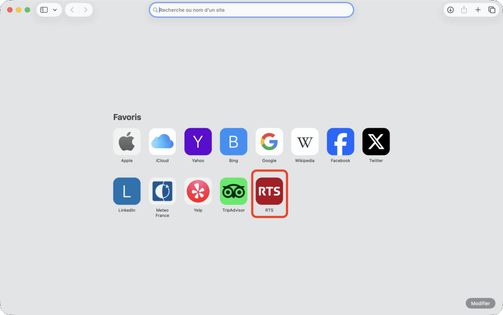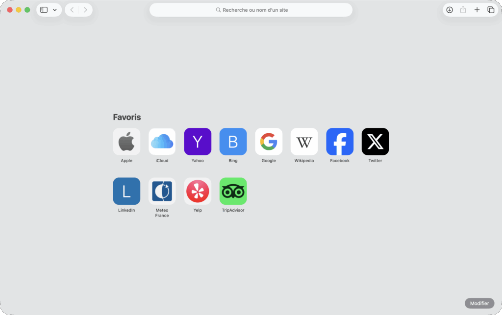 Lorsque l’on visite régulièrement le même site internet, il peut être intéressant de l’enregistrer comme l’un de nos sites favoris. Pour cela, Safari propose une manipulation simple ensuite il sera possible de les classer et de les organiser. Ainsi, vous gagnerez du temps pour accéder aux sites que vous visitez régulièrement directement sur la page de démarrage de Safari, comme ci-dessous (ex. : banque, assurances, actualités, …).