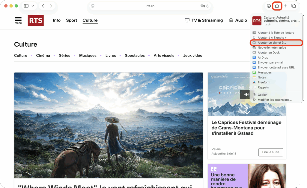 2. En haut à droite de la fenêtre de Safari, cliquez sur le bouton Partager