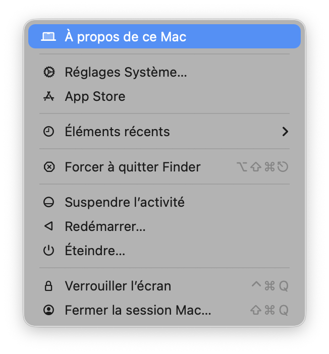 Puis, cliquez sur la première ligne A Propos de ce Mac !