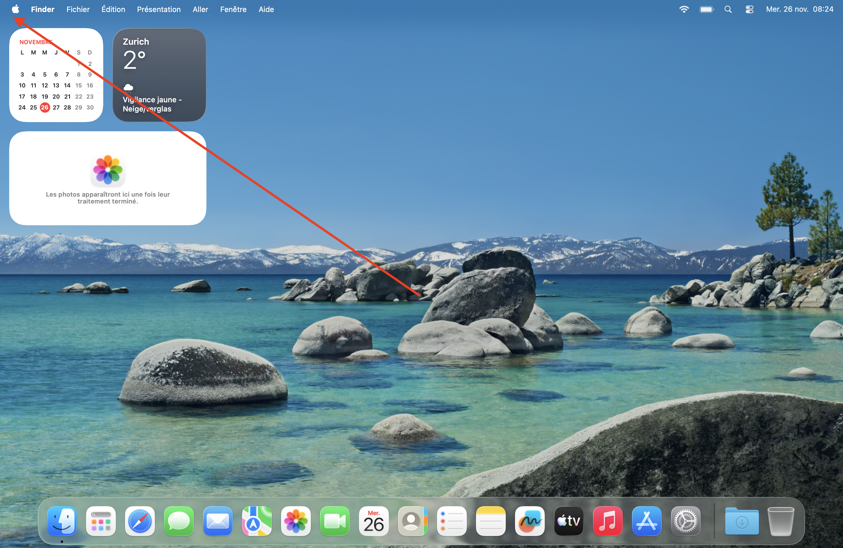 Pour obtenir les informations liées à votre Mac, cliquez simplement sur le menu Pomme, tout en haut à gauche de votre écran.